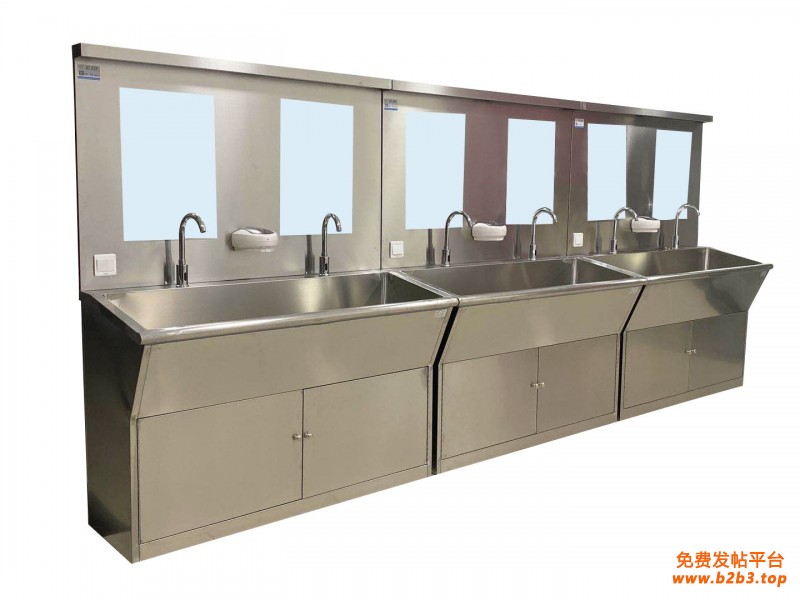 性能特点:304不锈钢双层制作, 一体化池体,无焊缝,槽体设计依据人体工程学原理; 感应式出水,红外感应系统灵敏,抗干扰性强;漏电保护设计,保证了操作人的使用安全; 槽体中间特殊静音处理,造型美观大方,使用方便。结构组成:全不锈钢槽体,整体无缝设计,极易清洁; 红外感应出水系统配有医用龙头,不浪费水资源; 自动给皂/给液器,使用方便卫生;豪华型不锈钢背板,保持整体效果(标准型); 可根据客户要求配置热水器,烘手器; 出水方式:感应式、膝碰式、脚踏式任选一种;